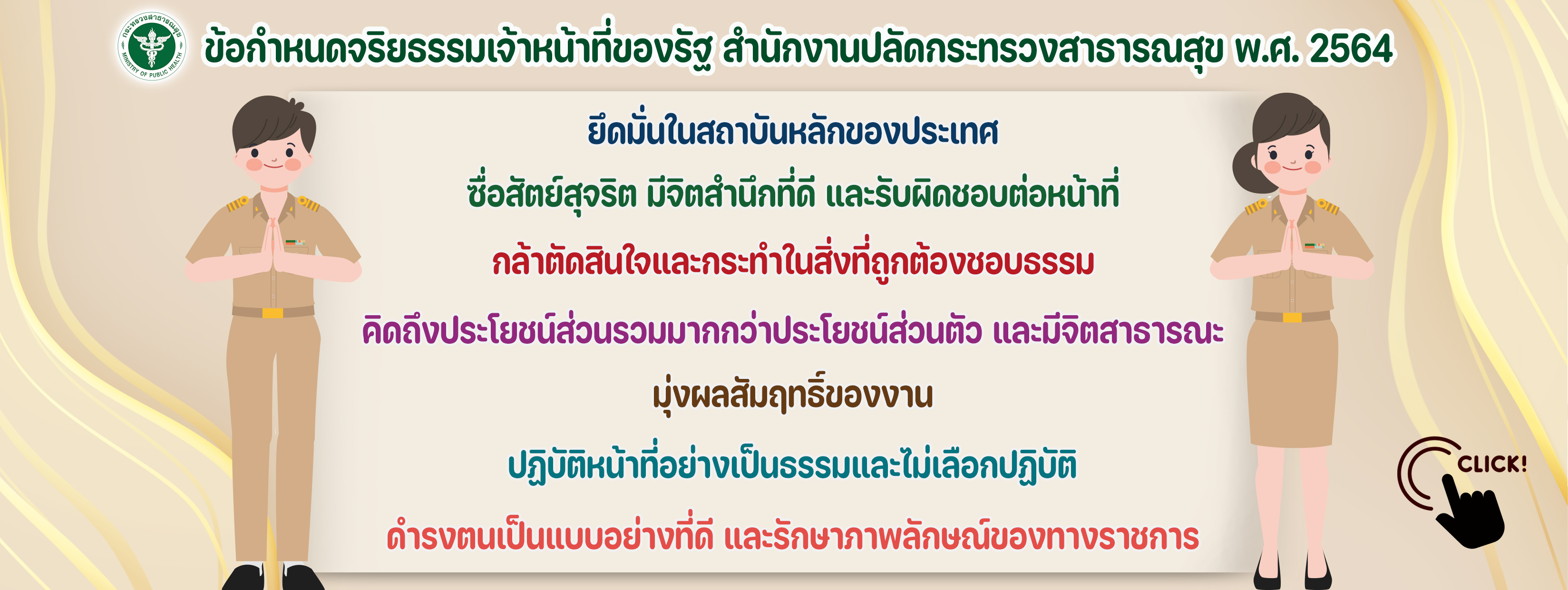 5. ข้อกำหนดจริยธรรมเจ้าหน้าที่ของรัฐ สำนักงานปลัดกระทรวงสาธารณสุข พ.ศ. 2564