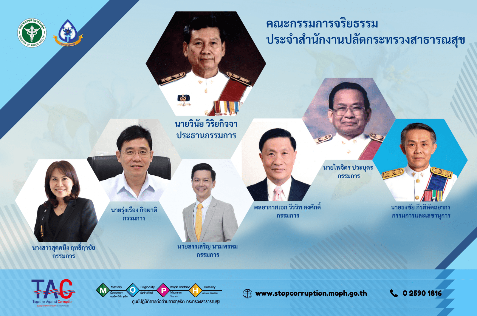 6. อินโฟกราฟฟิกคณะกรรมการจริยธรรม ประจำสำนักงานปลัดกระทรวงสาธารณสุข ชุดปัจจุบัน ที่มีนายวินัย วิริยกิจจา เป็นประธานกรรมการ