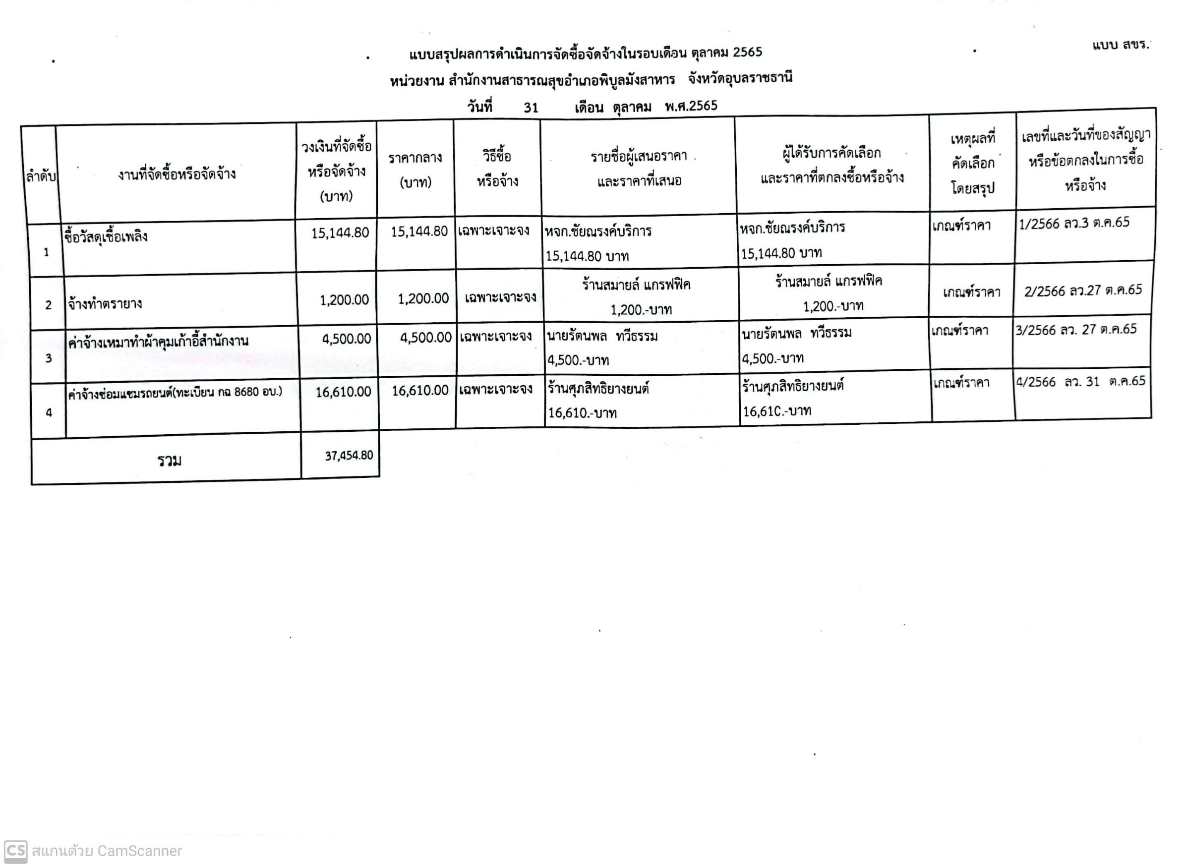 2. มีแบบสรุปผลการดำเนินการจัดซื้อจัดจ้างในรอบเดือน (แบบ สขร. 1) ไตรมาสที่ 1 เดือนตุลาคม 2565-เดือนธันวาคม 2565
